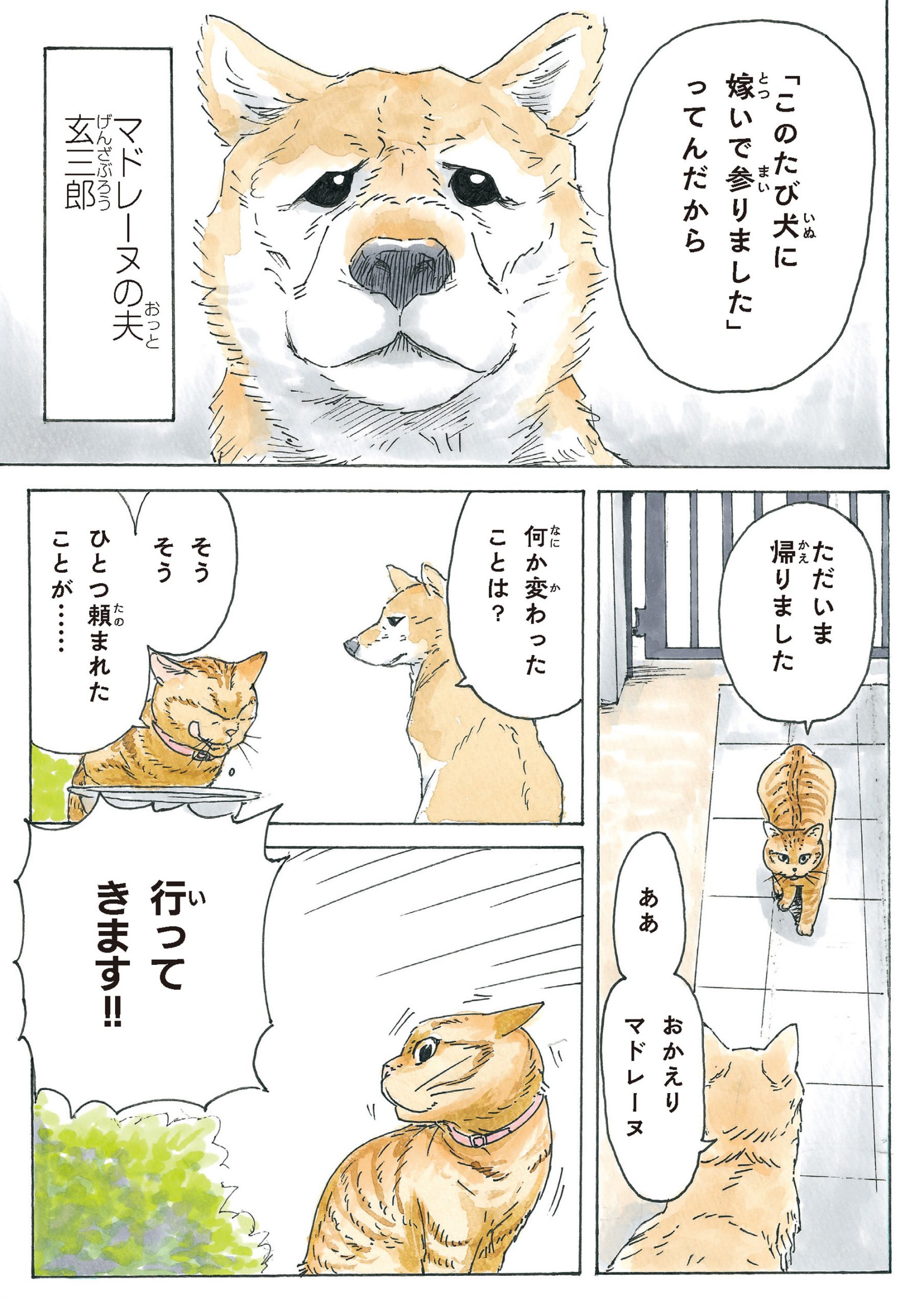 老犬の柴犬に嫁いできたという不思議な猫。気品溢れる「マドレーヌ夫人」とは?【かのこちゃんとマドレーヌ夫人 #1】
