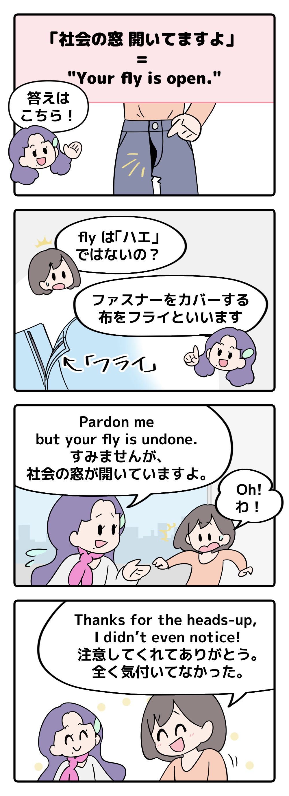 英語で「社会の窓 開いてますよ」って言えない人は読んでみて!ヒントは「●●is open!」と言います