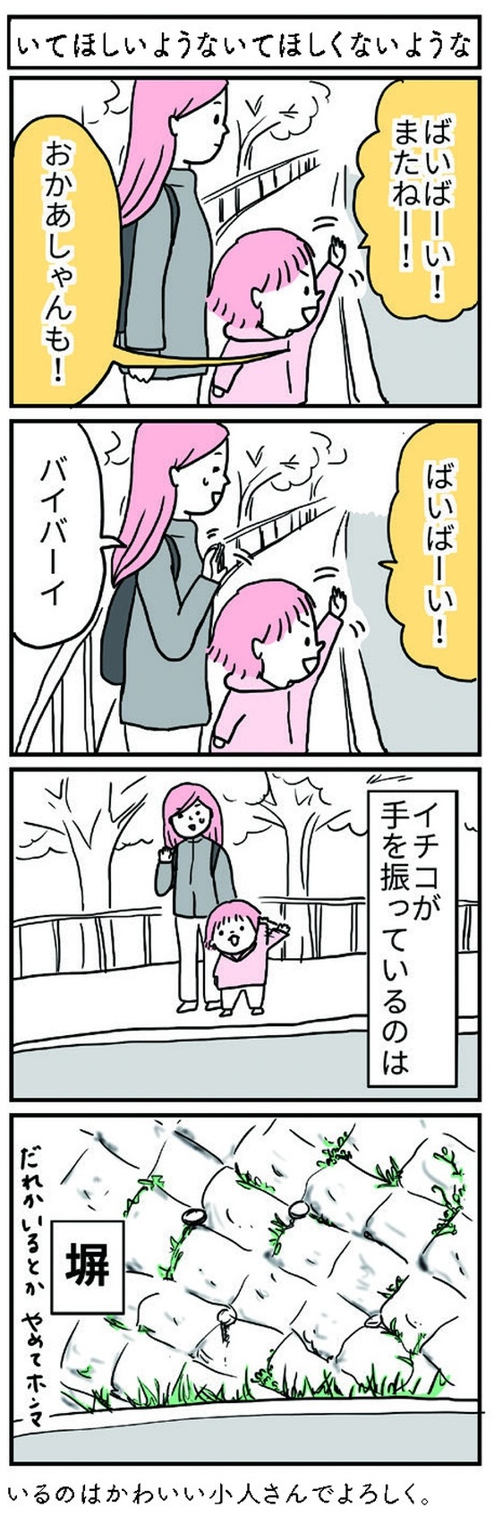 「ばいばーい!」と元気にお別れ。私も手をふるように促されたけど、その相手は…【育児ってこんなに笑えるんや! #23】