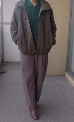 首元のファスナーを自由に調整できるので、おろして首周りをスッキリ見せることも可能。寒い日はタートルネックを中に着る時もありますし、着脱も簡単で、ゆったりとしたシルエットは楽ちん。「昼寝もできる外出着」として活躍しています。大きめサイズをダボッと着ればお腹周りのラインも拾わず、ミドル世代にも挑戦しやすい1枚です。