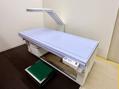 DEXA(Dual Energy X-ray Absorptiometry)は、2種類の低線量X線(高エネルギー・低エネルギー)を照射し、骨の吸収率から骨密度を正確に測定する検査です。