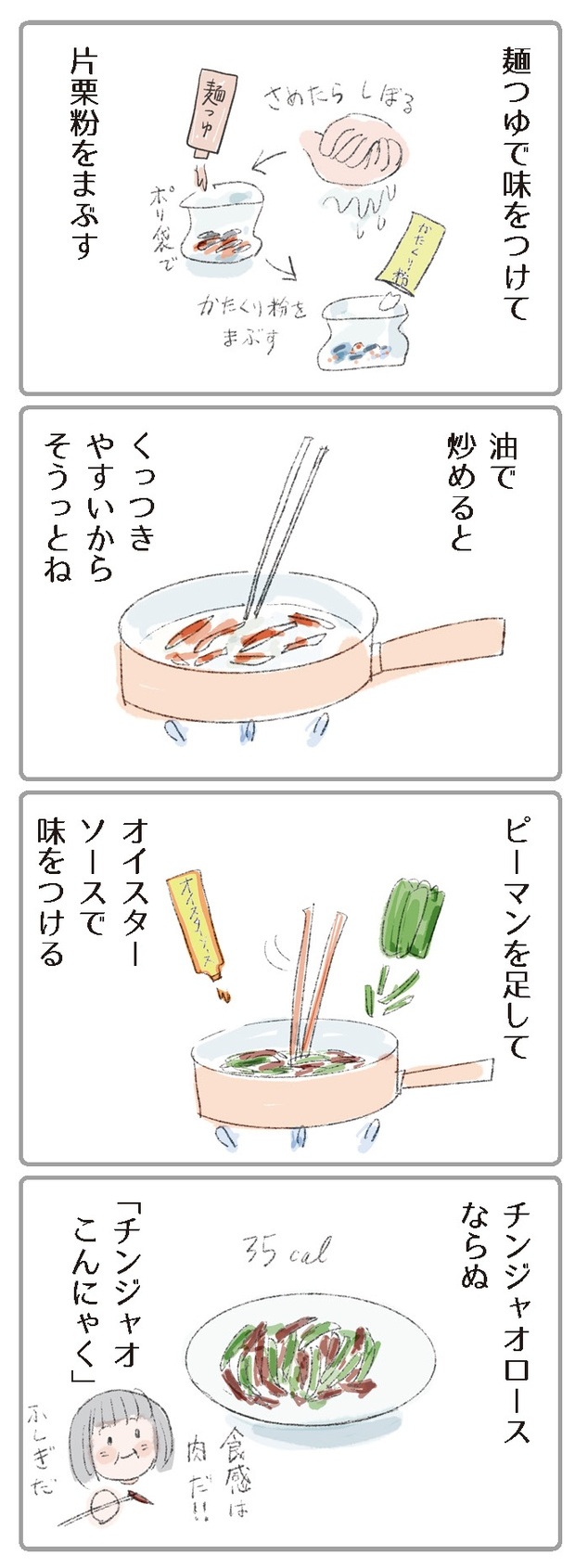 低カロリーの常備菜「こんにゃくのきんぴら」。パンチを効かせたくなる不思議【激せまキッチンで時短!簡単!ムダなしごはん #21】