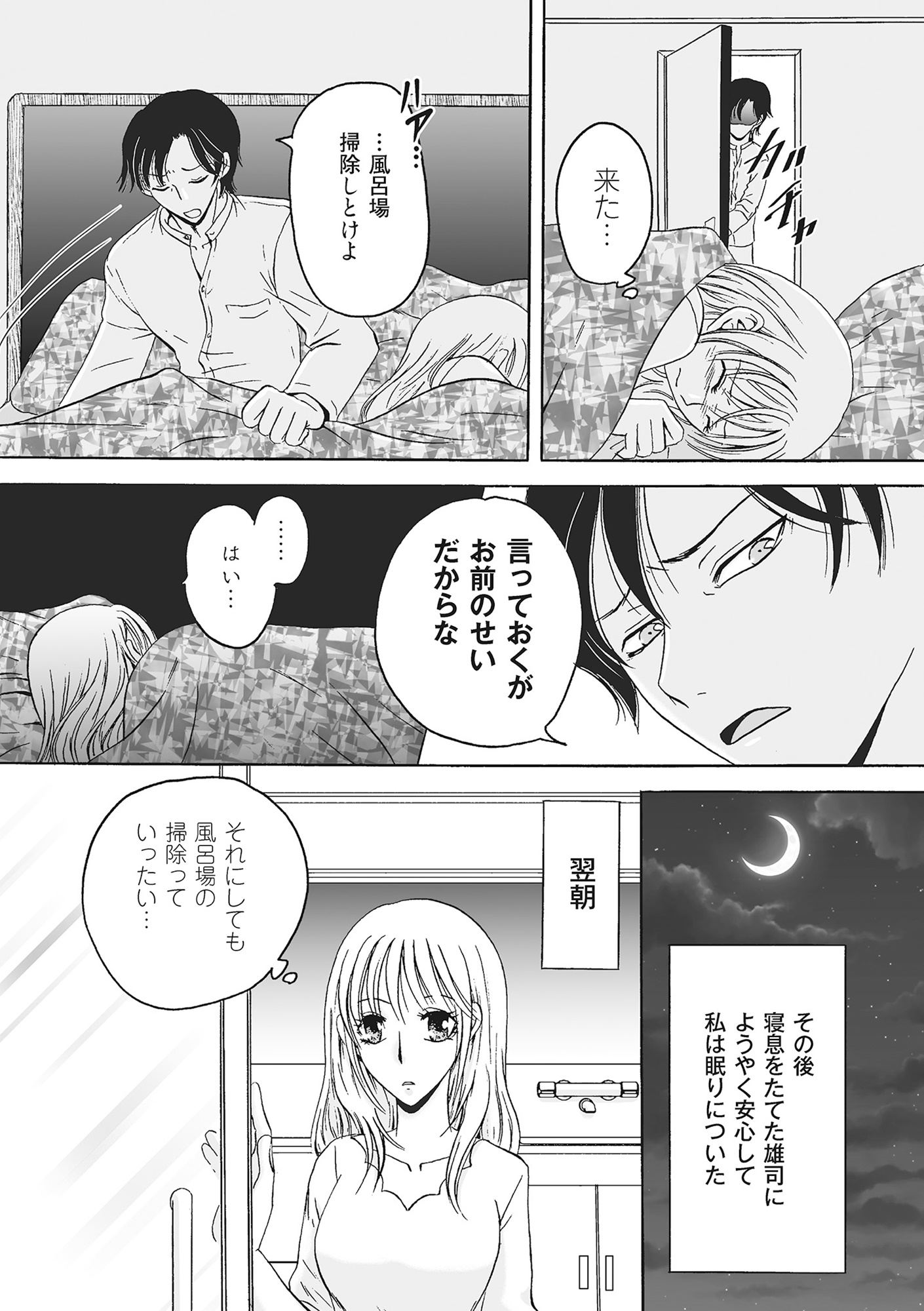 浮気直後、妻に迫る夫。妻が行為を拒むと、逆ギレして暴言を吐き…【復讐は夫の最期の夜に 挙式の翌日から地獄が始まった #2】