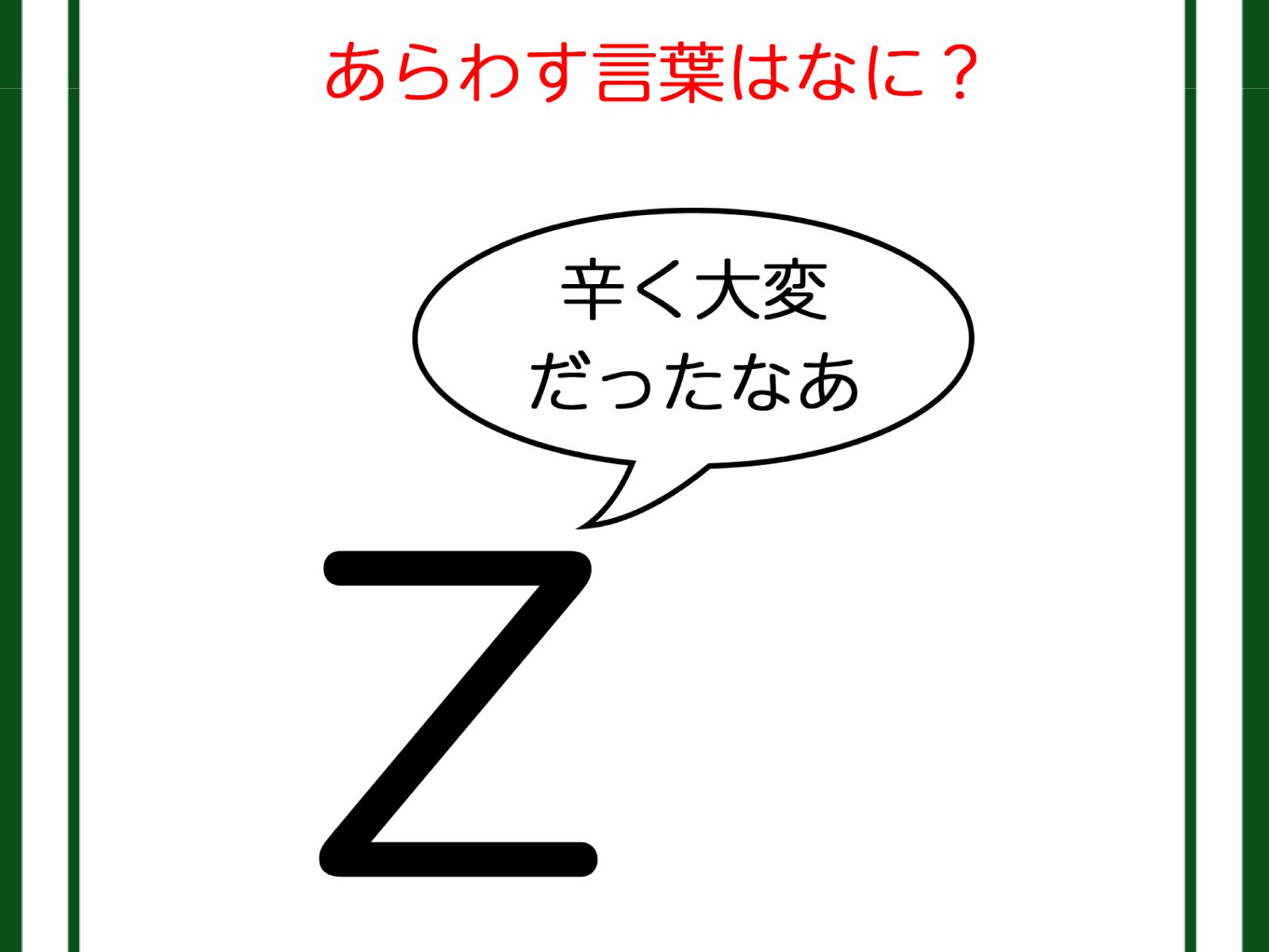 クイズです!「Zが『辛く大変だったなあ』と言っています」どんな言葉が隠れているか読み解けますか?【難易度LV2.・甘口】