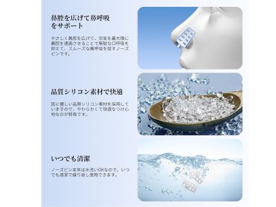 【ノーズクリップ】シリコンのクリップを鼻に差し込み、鼻孔を中から広げるタイプ。水洗いOKで繰り返し使えます♪