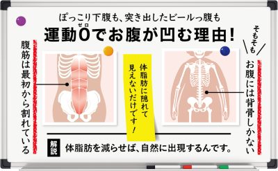 むしろ、お腹の筋肉は鍛えれば鍛えるほど、ウエストは太くなってしまいます。