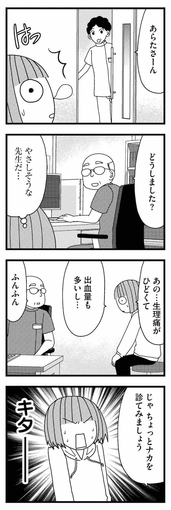 ついに産婦人科を初受診。「生理痛がひどい」と先生に症状を伝えると、診察台に座ることに!【子宮がヤバイことになりました。 #4】