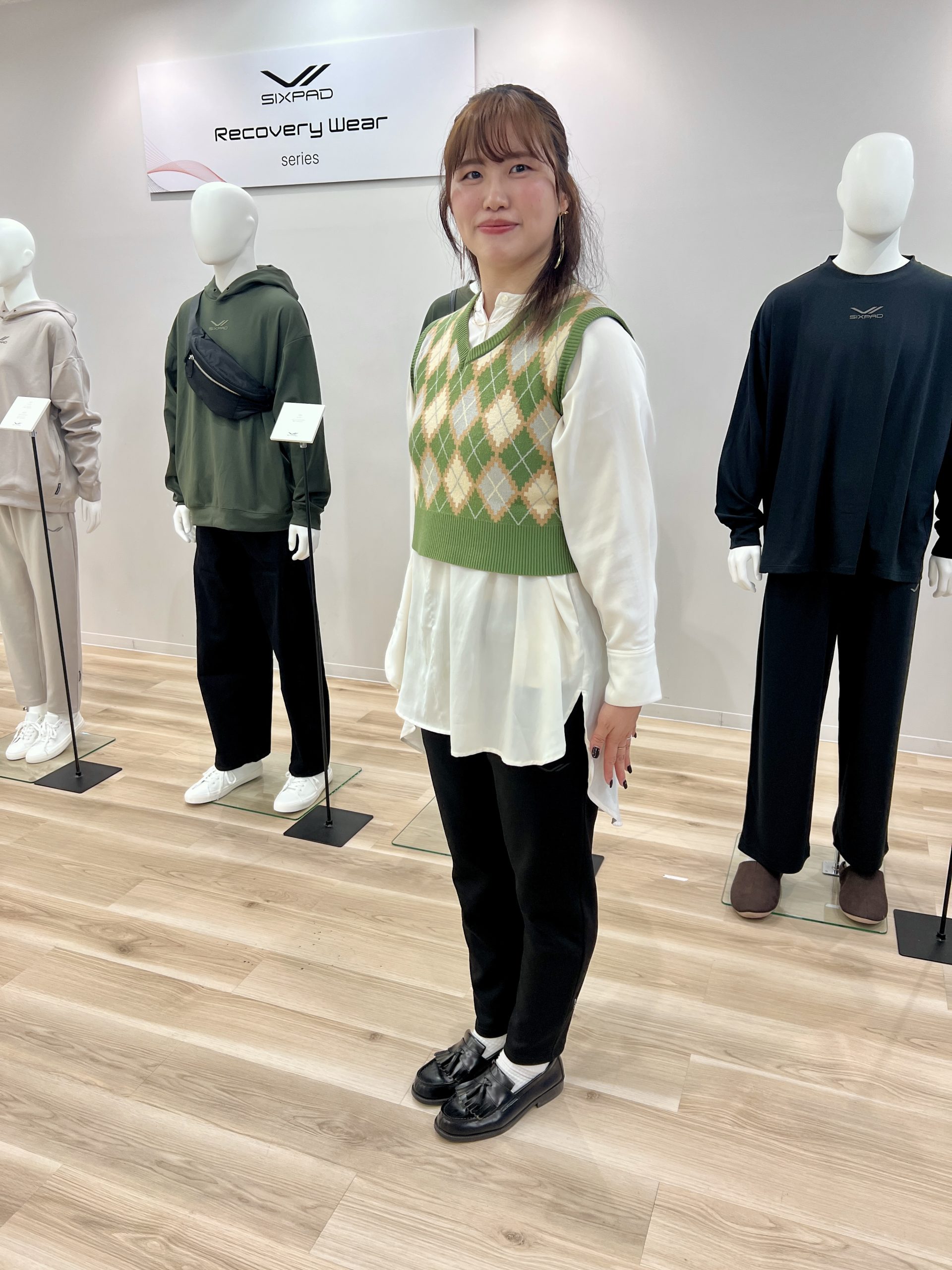 スタッフの皆様の着こなしを見てもわかる通り、デイリーウェアどころか、オフィスにまで対応可能! ちなみに会場となったMTG東京オフィスはビジネス街であるJR品川駅前のすてきなオフィスビルの一角ですので、アパレルといえども大手町オフィスカジュアル寄りのコード感です。思ったよりもリカバリーウェアのオフィス化はイケる……!