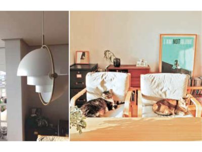 ふたりで選んだデンマーク製の照明と、 猫が日光浴をするイス