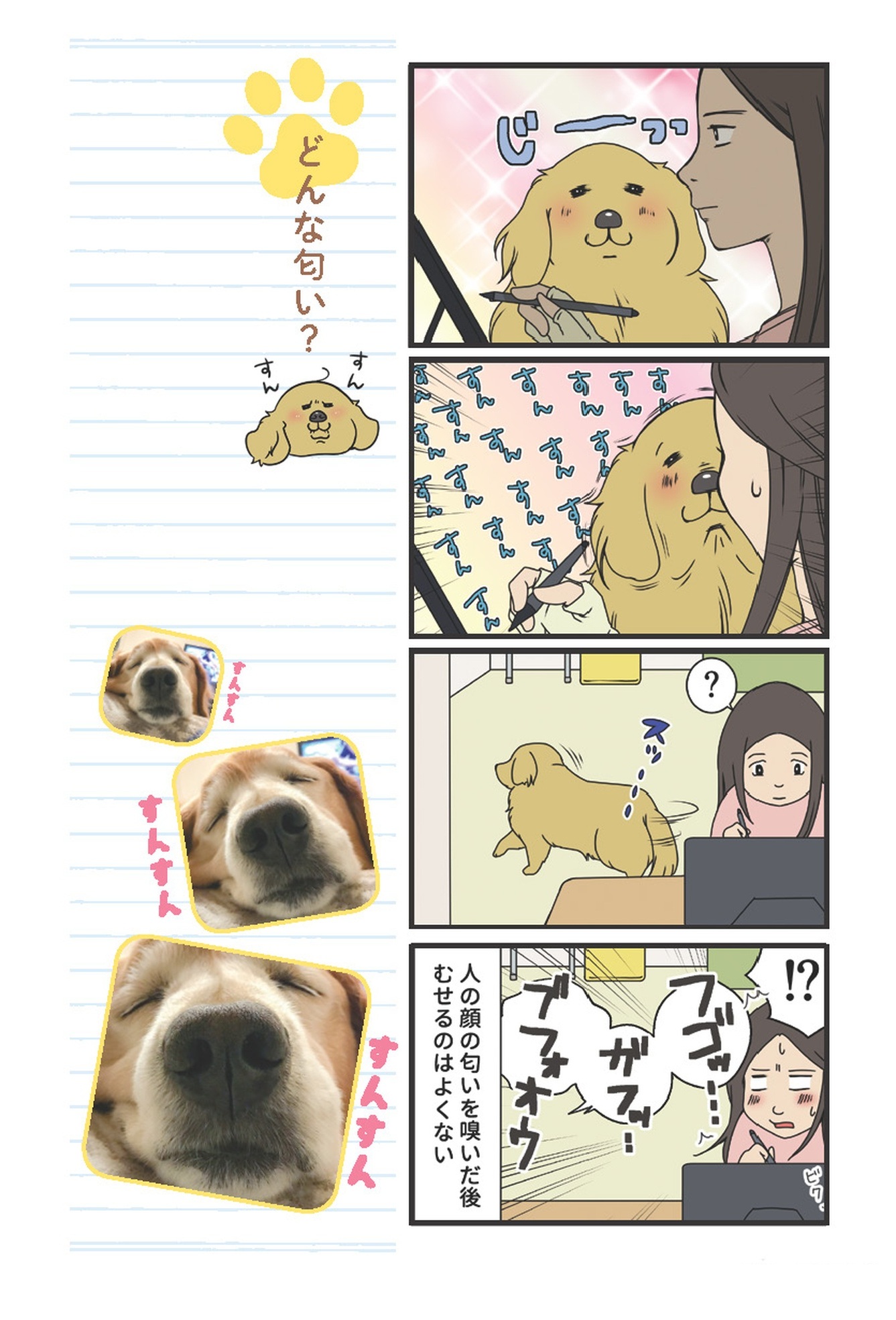 ジーっと見つめ匂いを嗅ぎ去っていく愛犬…陰でむせるのは、お願いだから止めて!?【おさんぽですし! おしゃべり犬とイライラ猫の日記 #9】