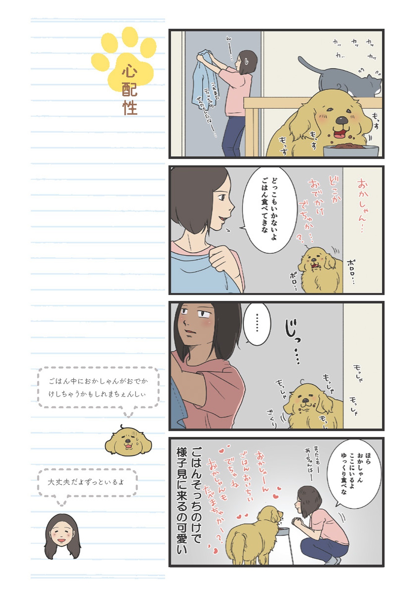 ごはんより安否確認?食事そっちのけで様子を見にくる愛犬がカワイイ♡【おさんぽですし! おしゃべり犬とイライラ猫の日記 #10】
