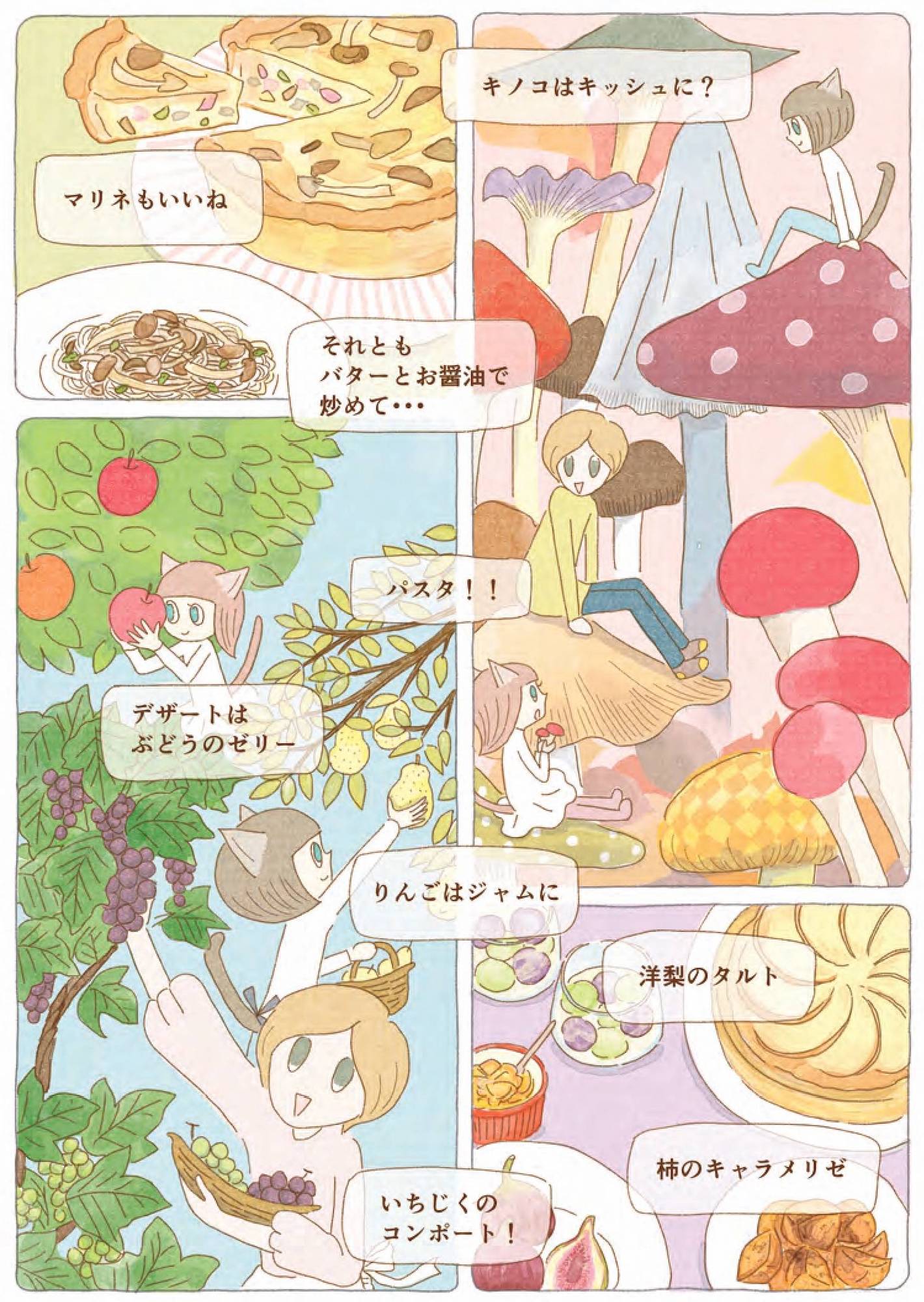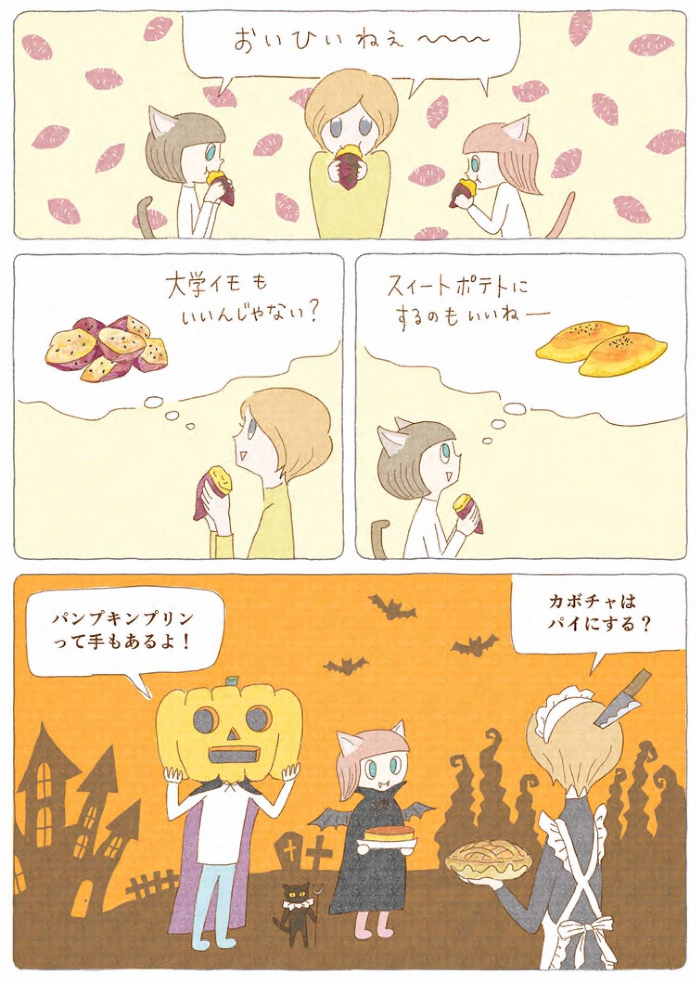 秋はごちそうが大集合。やきいもやキノコ、果物や魚から広がるおいしい空想【夜が明けるとき猫がそばにいれば #15】