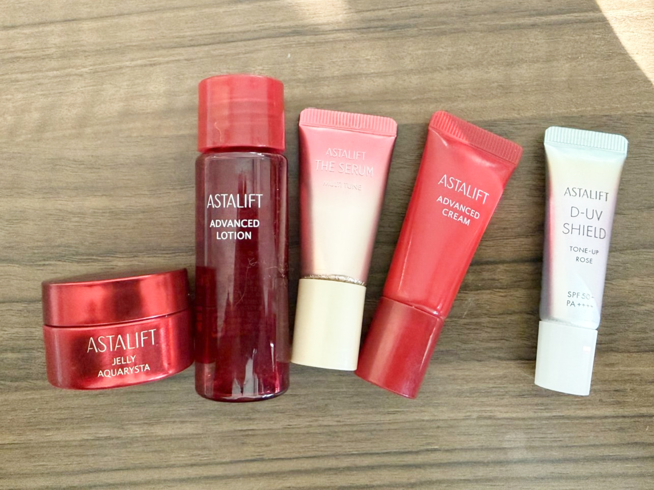 アスタリフト ジェリー アクアリスタ 7g、アスタリフト アドバンスドローション 14mL、アスタリフト ザ セラム マルチチューン 5mL(医薬部外品)、アスタリフト アドバンスドクリーム 7g、アスタリフト D-UVシールド トーンアップ ローズ [SPF50+・PA++++] 4g
