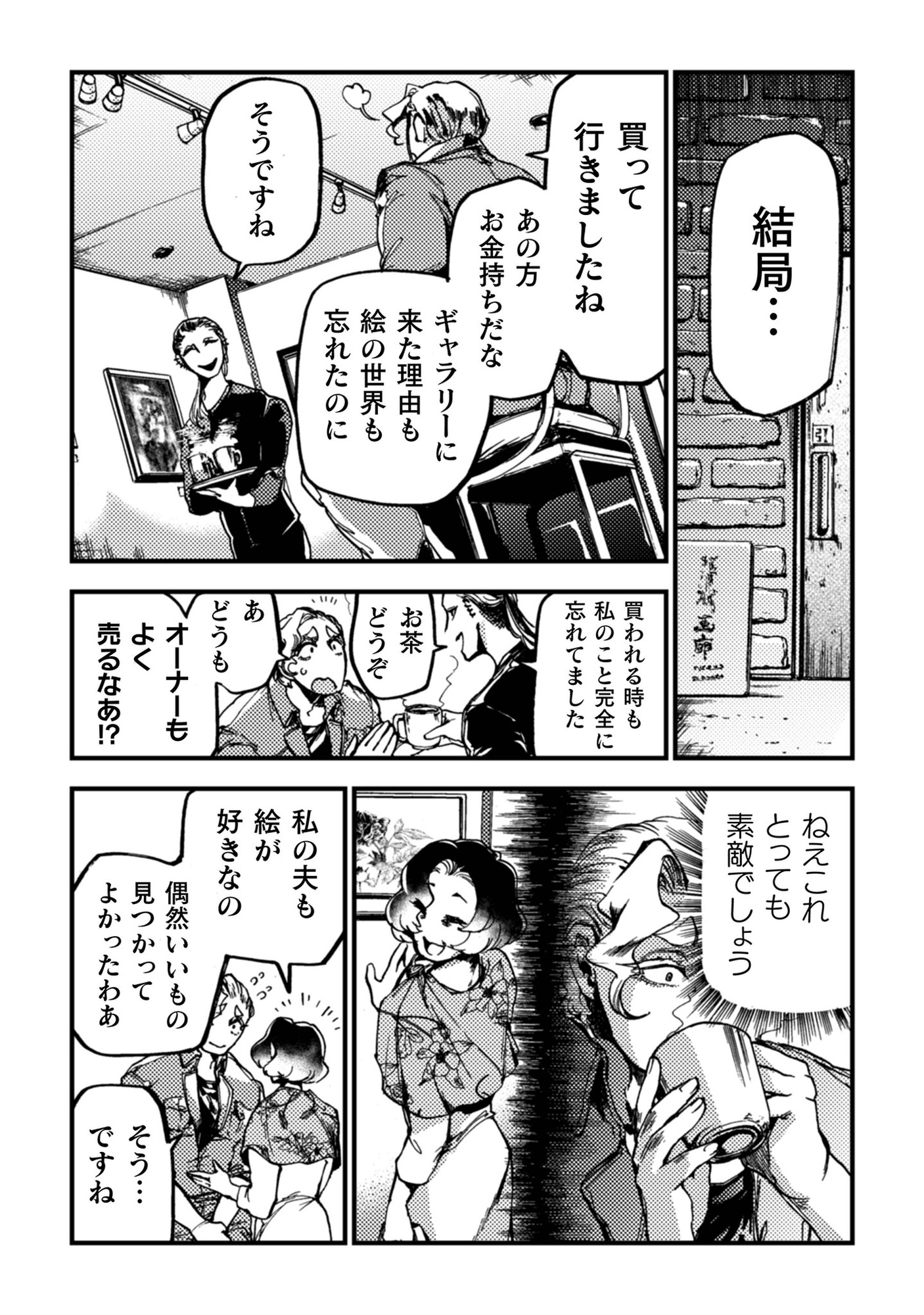 そんなある日、裏道の怪しい画廊を見つけて入ってみると、そこには妖しいオーナーと絵画の数々が彼を待っていた。