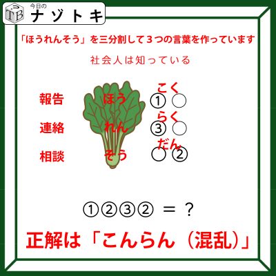 クイズです!「野菜を含めた3つの単語を考えましょう」社会人として大切ですよね【難易度LV3.・中辛】