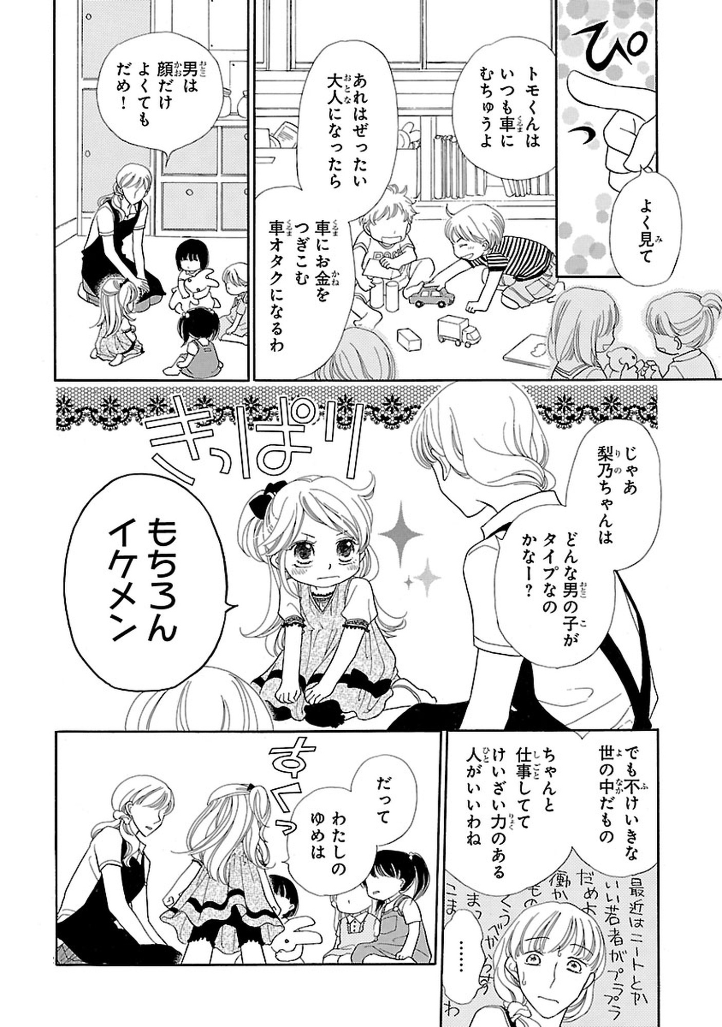 将来は“幸せな結婚”を夢見るしっかり者の保育園児・梨乃が巻き起こす、弾丸のように突進する恋物語。