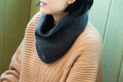 クシュッと立ち上がる大きめの作りも嬉しいポイントで、鏡に全身を写してみると、こころなしか小顔に見える!しかも、筆者の定番である茶色やグレーの着こなしにぴったりで、この冬お気に入りの首元が開いたコートと合わせると本当に便利です。