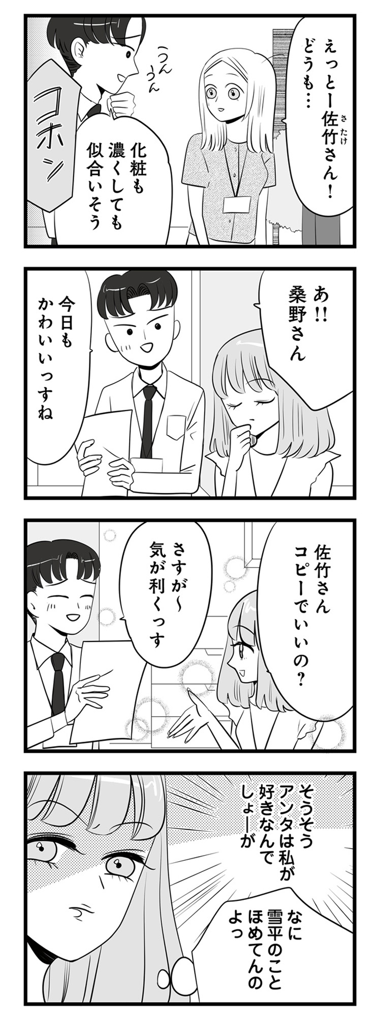 「アンタは私が好きなんでしょ」女性社員が褒められるのがムカつく!男性社員との会話にすかさず割り込む【今日もワタシが一番カワイイ #4】