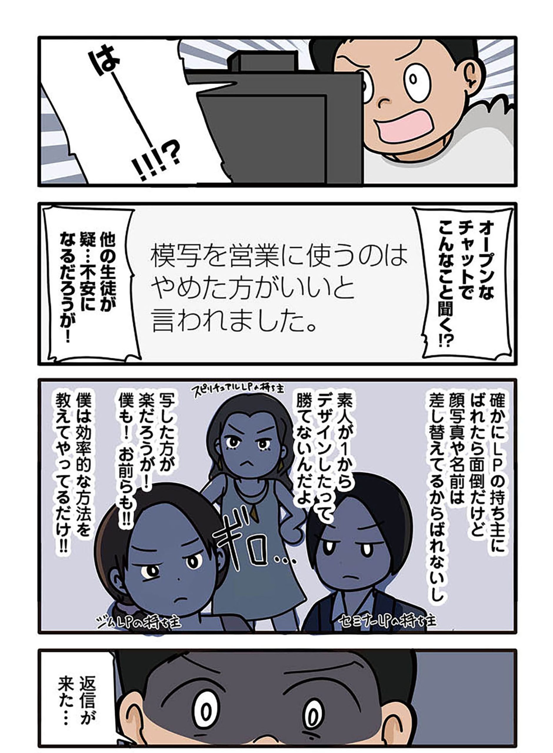 模写したLPを使って営業開始! すると見知らぬ人から注意を受け、講師に相談すると…【ブラック企業で闇落ちしてWebデザイナーを目指したけれど、キラキラ詐欺に騙された話 #12】