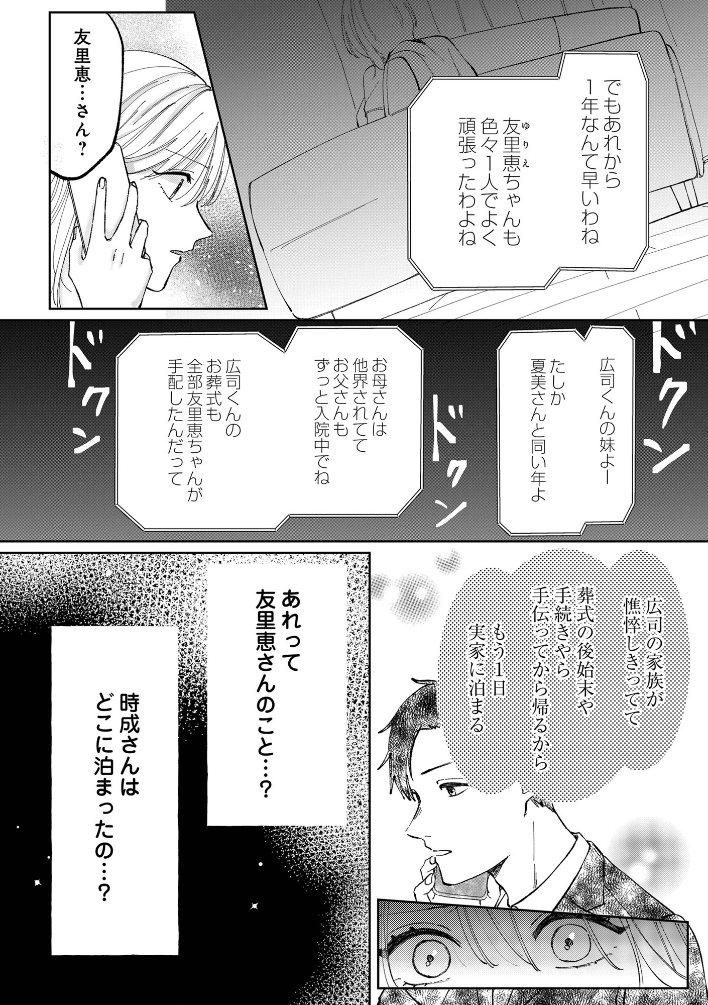 友人の葬儀の日、夫はどこに泊まったの?義母との会話で夫が嘘をついていたことを知り…【熱が冷めた私たちは #3】