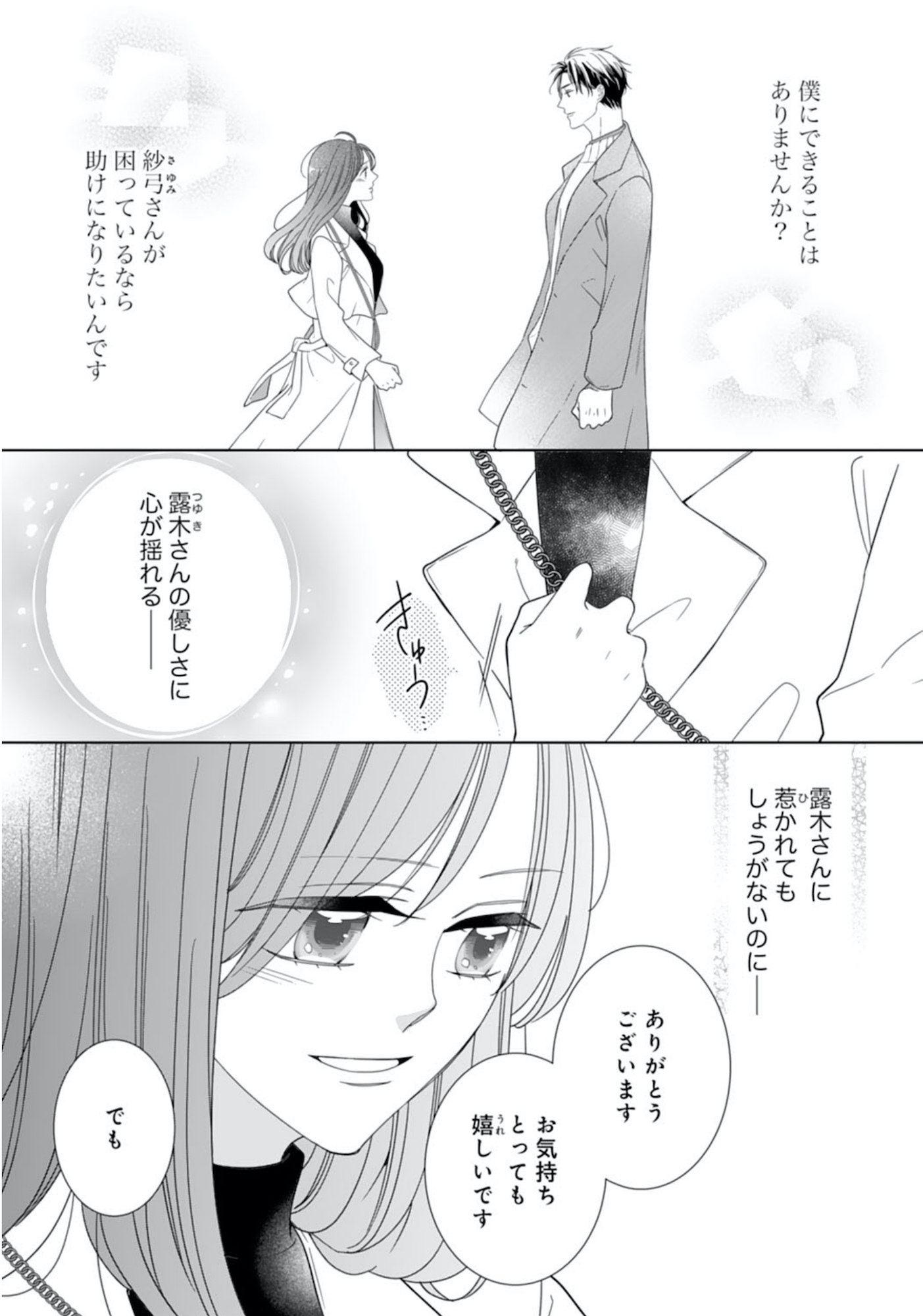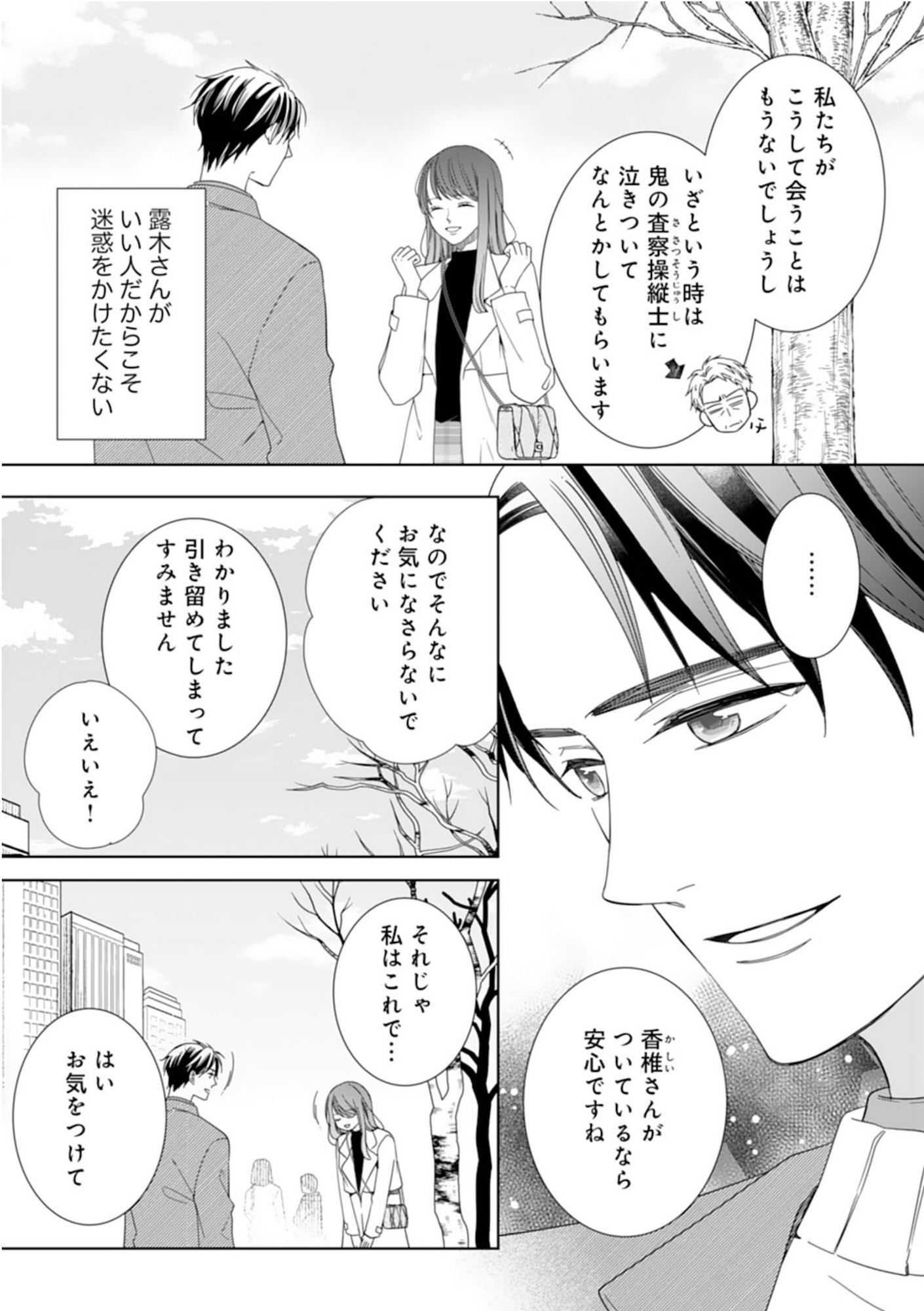 パイロットの元恋人に裏切られた過去から縁談を断るつもりだったが、待ち合わせの場で露木も結婚する気がないと知り、ひと安心する。