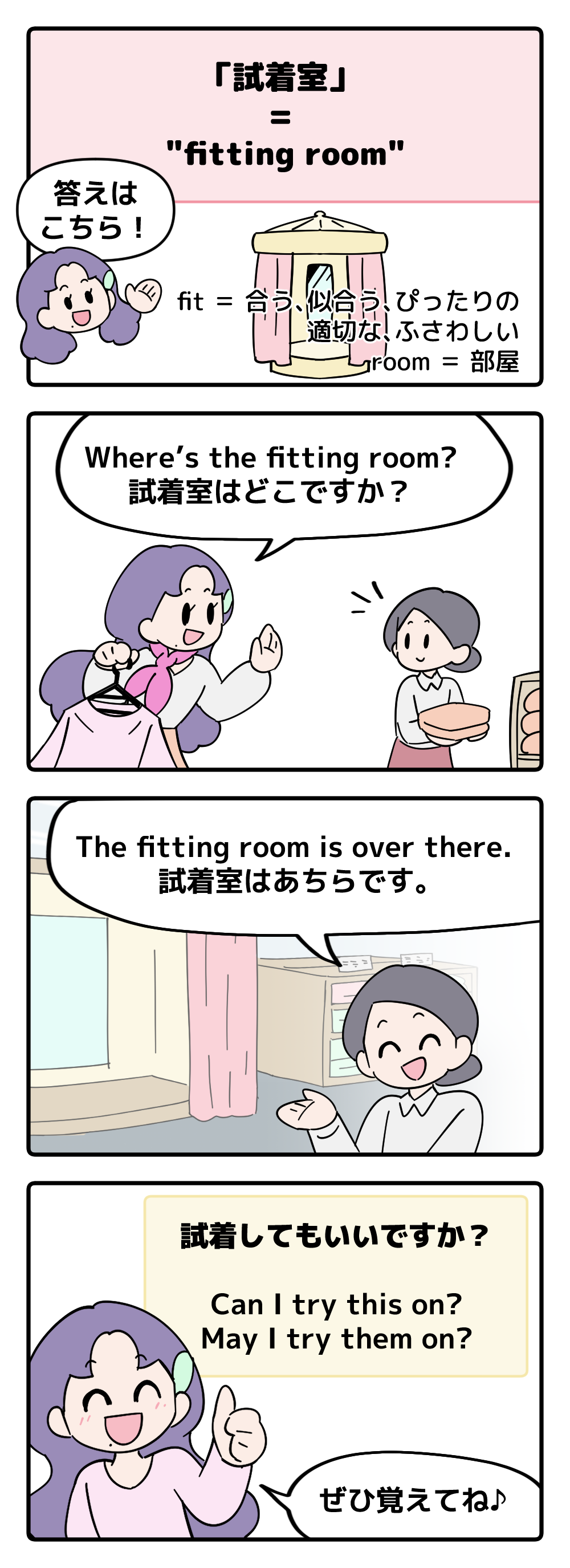 英語で「試着室」って言えない人は読んでみて!ヒントは「●●room」だよ