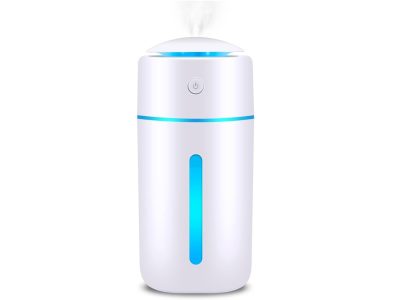 Amazonの加湿器で一番人気。とにかく小さい! バッグに入れて携帯したり、車載用にしても。7色のLEDライトつき