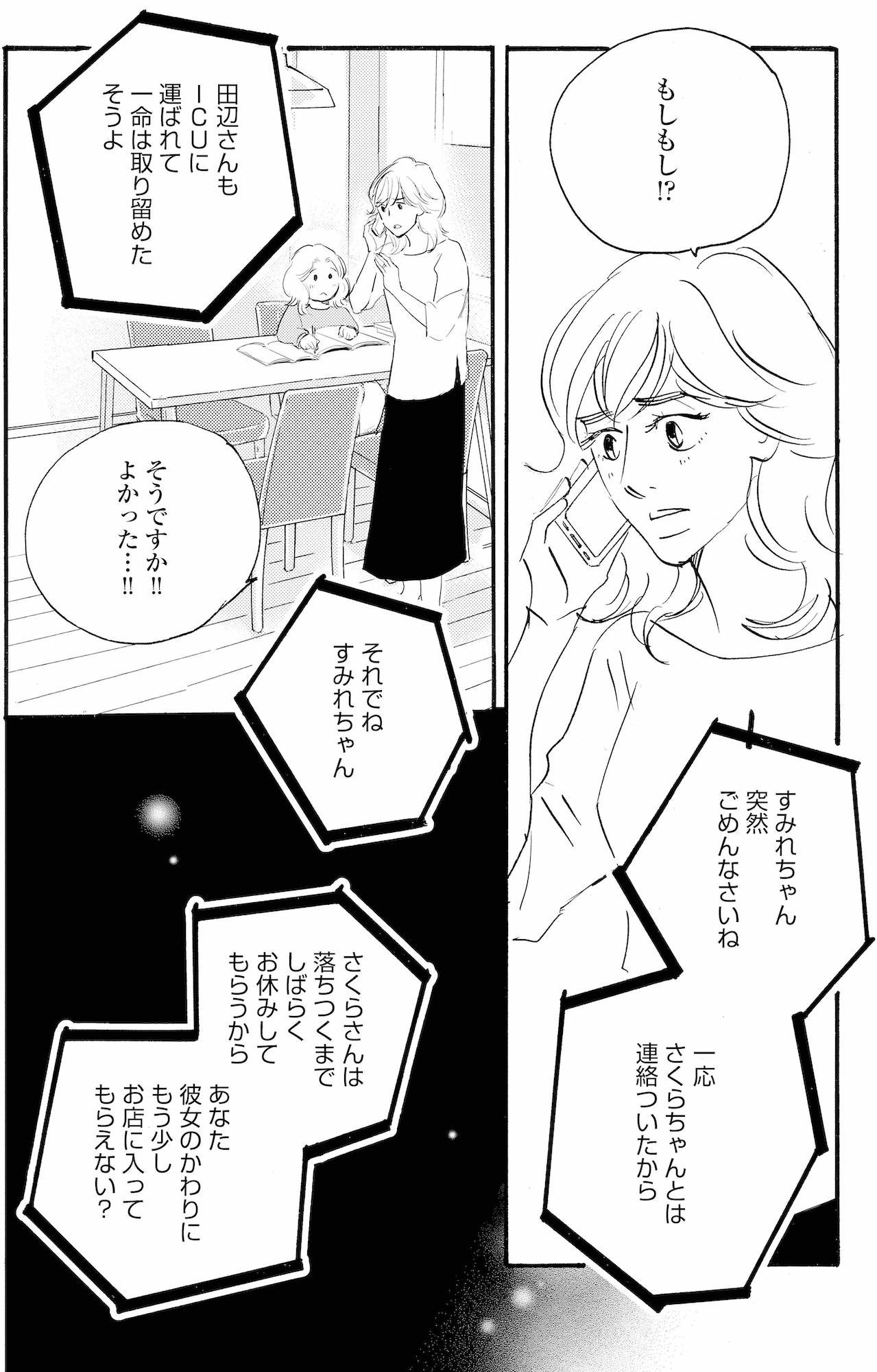 帰宅後もママ友とお客さんが気がかりで上の空。そこへ一本の電話【秘密の花園(1) #24】