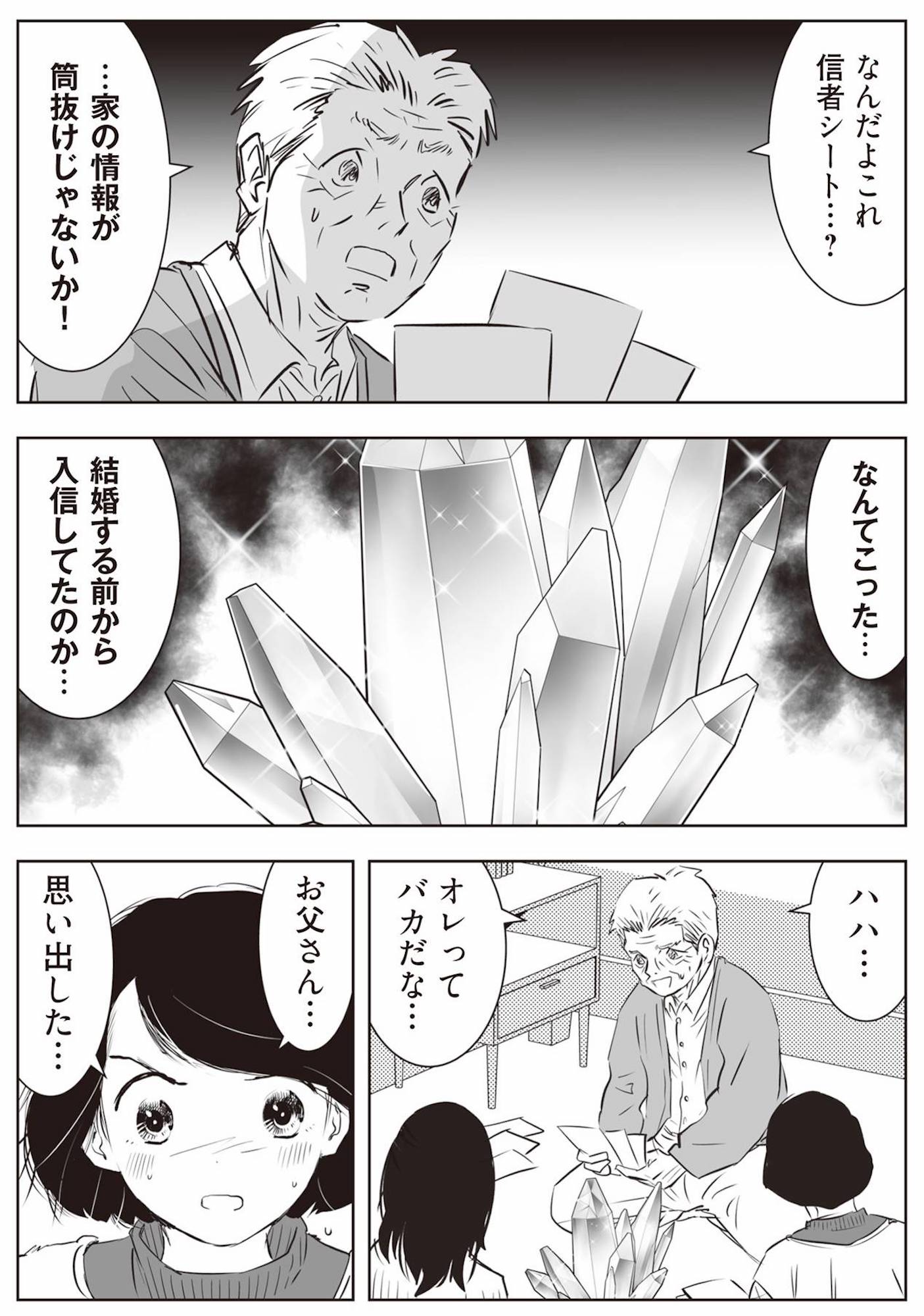 大きな水晶が1千万円!? 家から次々と見つかる宗教関連の商品に、家族は絶句【長年家族だと思っていた母は知らない人でした #9】