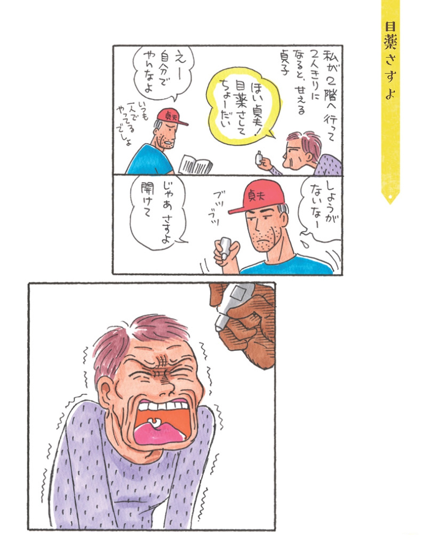 「目薬さして」私のいないところで夫に甘える姑…なぜ口を開けて待っている!?【アラカン主婦の毒吐き日記~貞子バーバはめんどくさい~ #10】