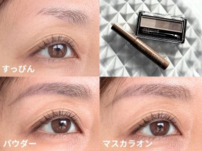 セザンヌのアイブロウパウダーは、他にも「ノーズ&アイブロウパウダー 03 オリーブ」を所持しています。後者はリニューアル前からリピートし続けているお気に入りアイテムですが、前者のほうが薄づきで、垢抜けて洗練された印象に仕上がるところに惹かれています。