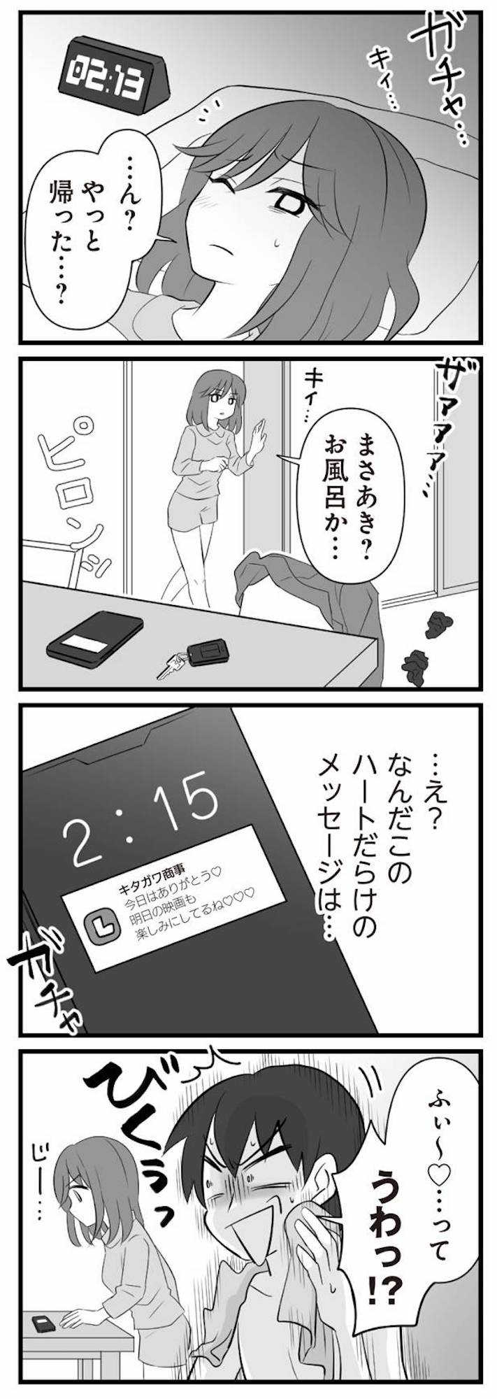 帰宅が遅くなる日が増えてきた夫。スマホを見られて大慌てする姿を見て、女の勘が冴える!【夫は不倫相手と妊活中2 #15】