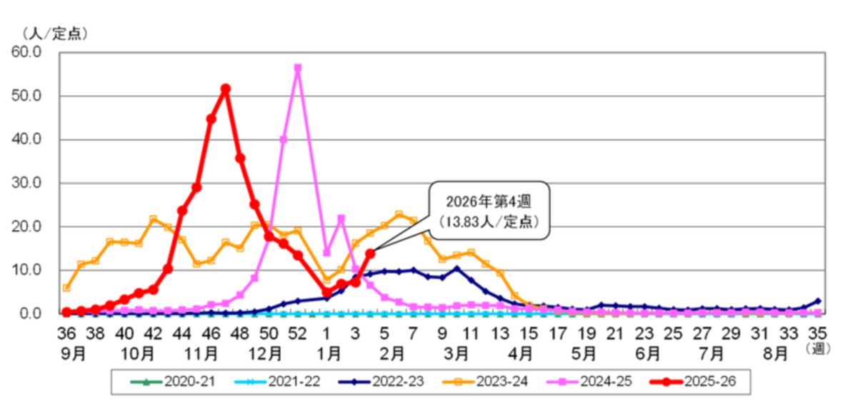 【図表】都内におけるインフルエンザ患者報告数の推移を見る
