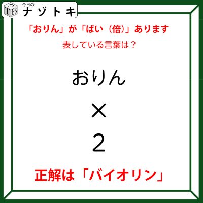 「×2」ということは、つまり「倍(ばい)」にするということです。よって、「おりん」が「ばい」ということになりますね。言い換えれば「ばい」の「おりん」ということです。ここまでくればわかった人も多いのではないでしょうか。