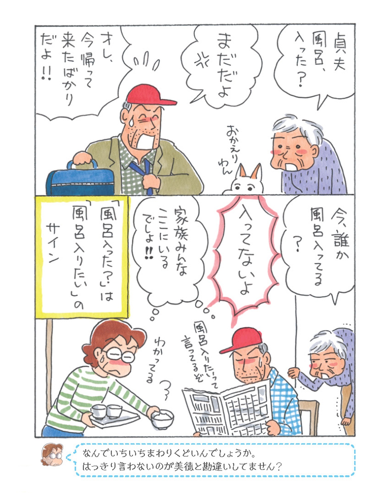 いちいち遠まわしな姑…「風呂入った?」は「風呂入りたい」のサイン!【アラカン主婦の毒吐き日記~貞子バーバはめんどくさい~ #22】