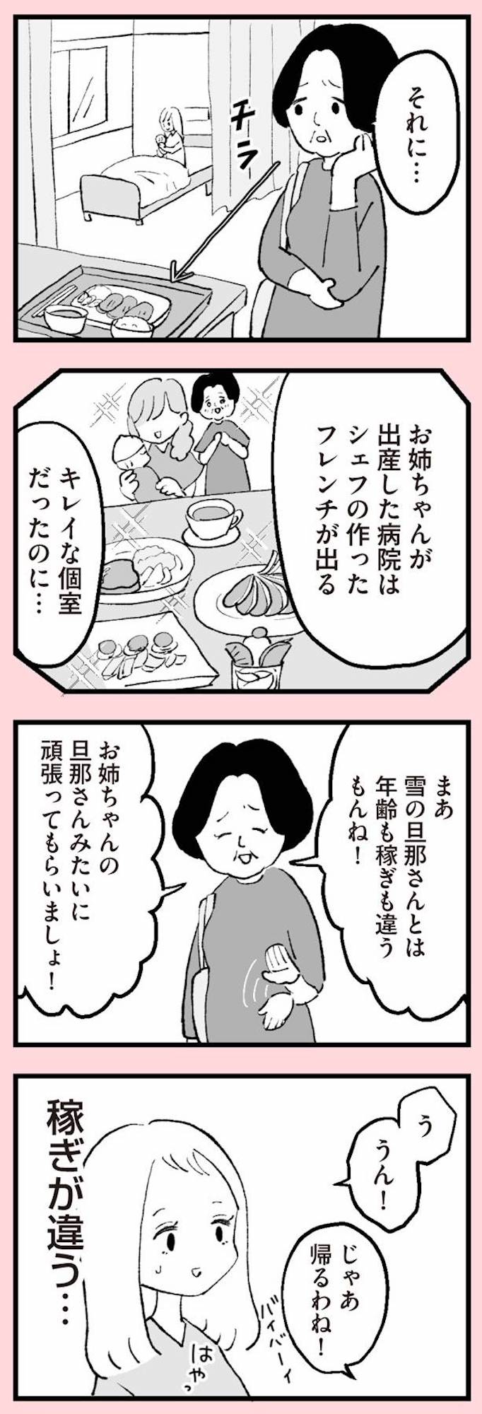 「稼ぎが違うもんね!」出産直後なのに、姉家族と比較し嫌味を言う母【あのママが妬ましい #4】