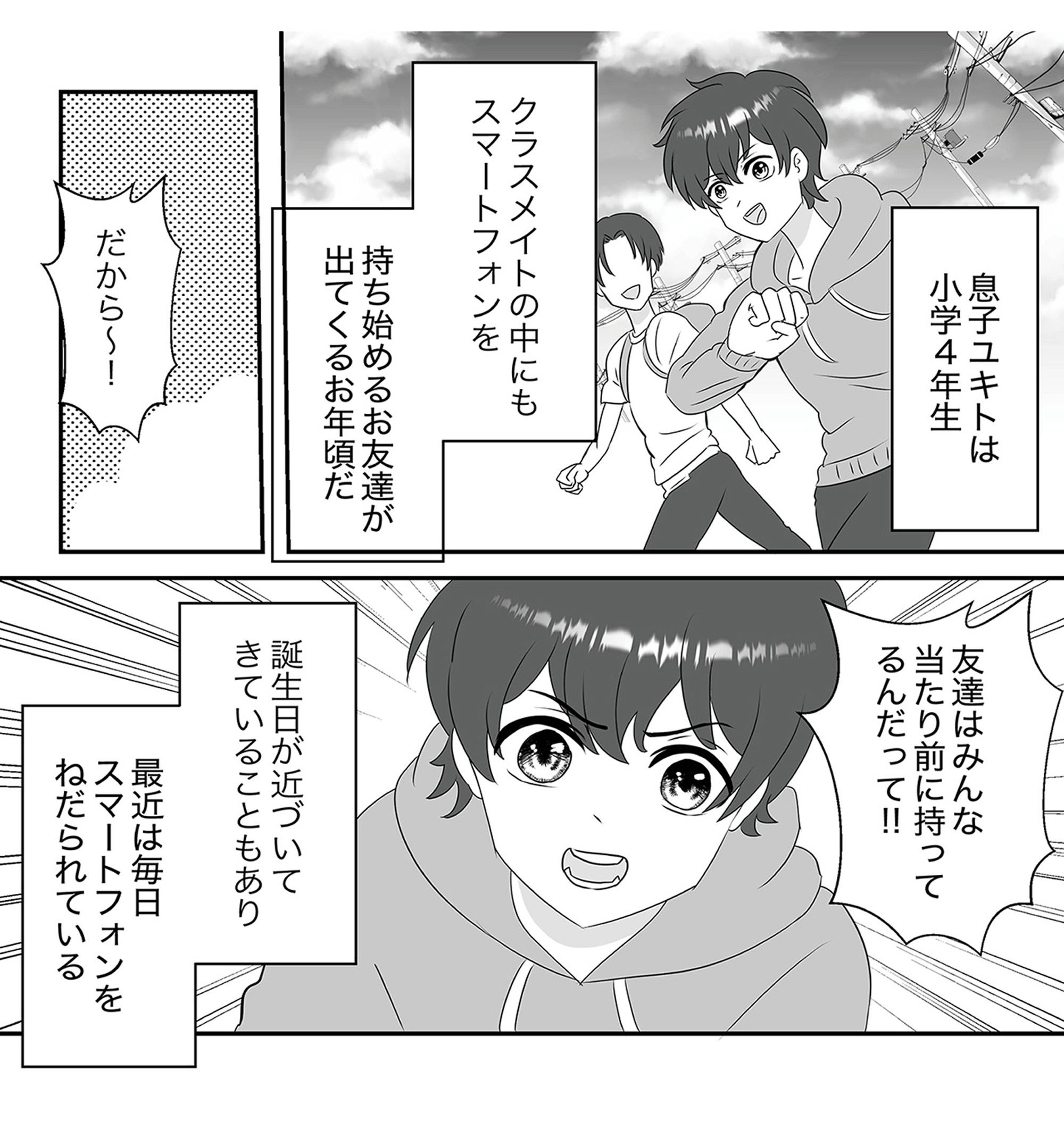 息子からスマホが欲しいとねだられて、両親は5つの決まり事を作り息子にも携帯を持たせることに。