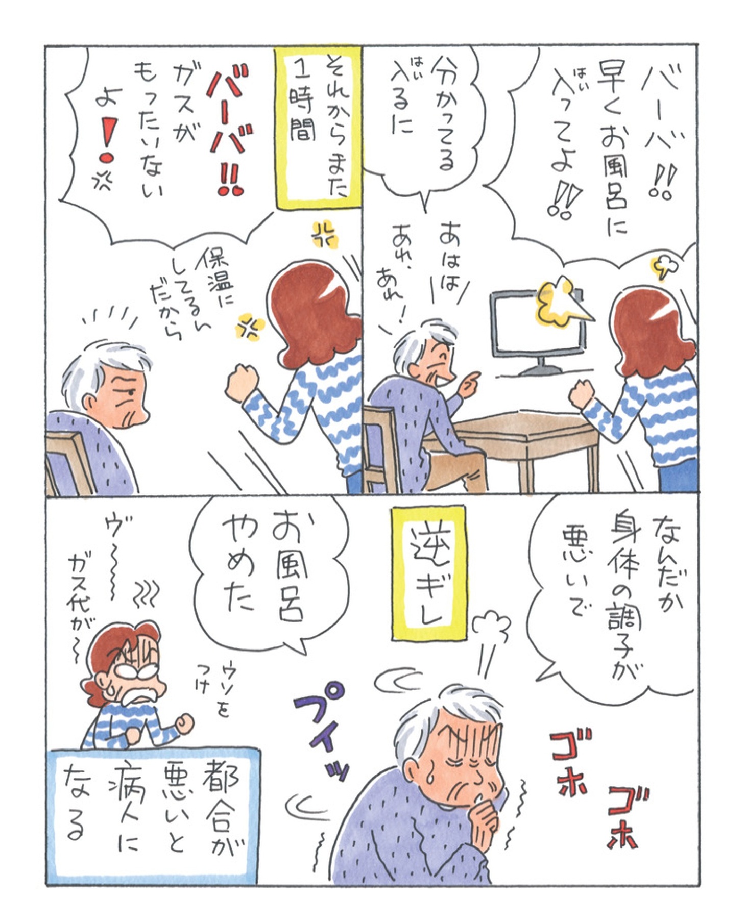 せっかく急いで入ったのに…なかなか風呂に入ろうとしない姑の言い訳にイライラ!【アラカン主婦の毒吐き日記~貞子バーバはめんどくさい~ #24】