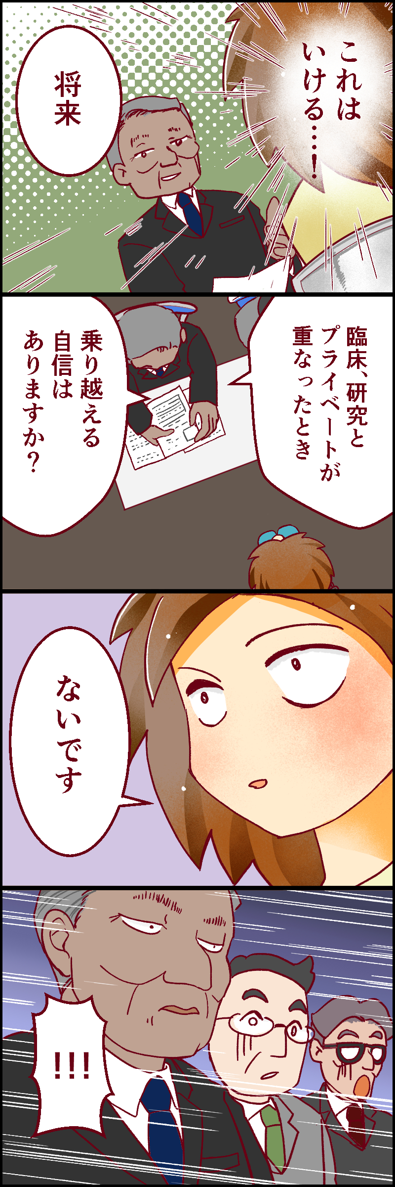「臨床、研究とプライベートが重なったとき、乗り越える自信は、ないです」