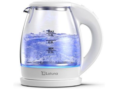 電気ケトル ガラス ケトル 湯沸かしケトル LEDライト付 電気 ポット 【コップ1杯95秒】 1.0L [Latuna ラチュナ] コーヒー 湯沸かしポット 小型 おしゃれ 紅茶 お茶 空焚き防止 PSE認証済み (ホワイト)