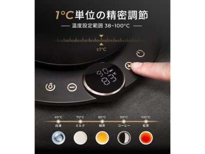 LEDディスプレイで、温度がひとめでわかる人気モデル。粉ミルク45℃、緑茶75℃、コーヒー95℃など、7段階の「最適」温度設定が可能!