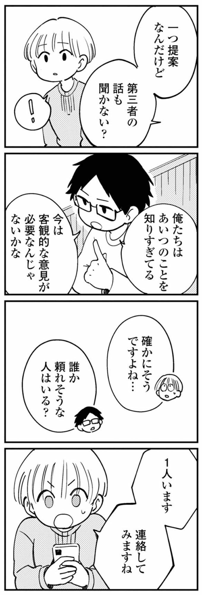 冷静に夫の行動を分析する先輩。悩む妻に先輩が提案したこととは?【夫が裏アカで70人と不倫してました #7】