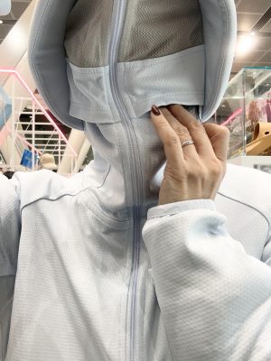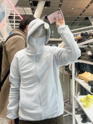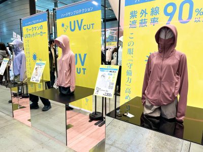 バリエーション豊富な紫外線対策コーナーで1番注目を集めていたのが、クールUVサンシェードパーカーEX +です。ファスナーを上まで閉めると顔を完全に隠せるデザインが通称「不審者パーカー」としてSNSを中心に拡散し、2025年夏には2万6000点が完売。2026年は製造数を大幅に増やし、12万点の販売を計画しているそうです。