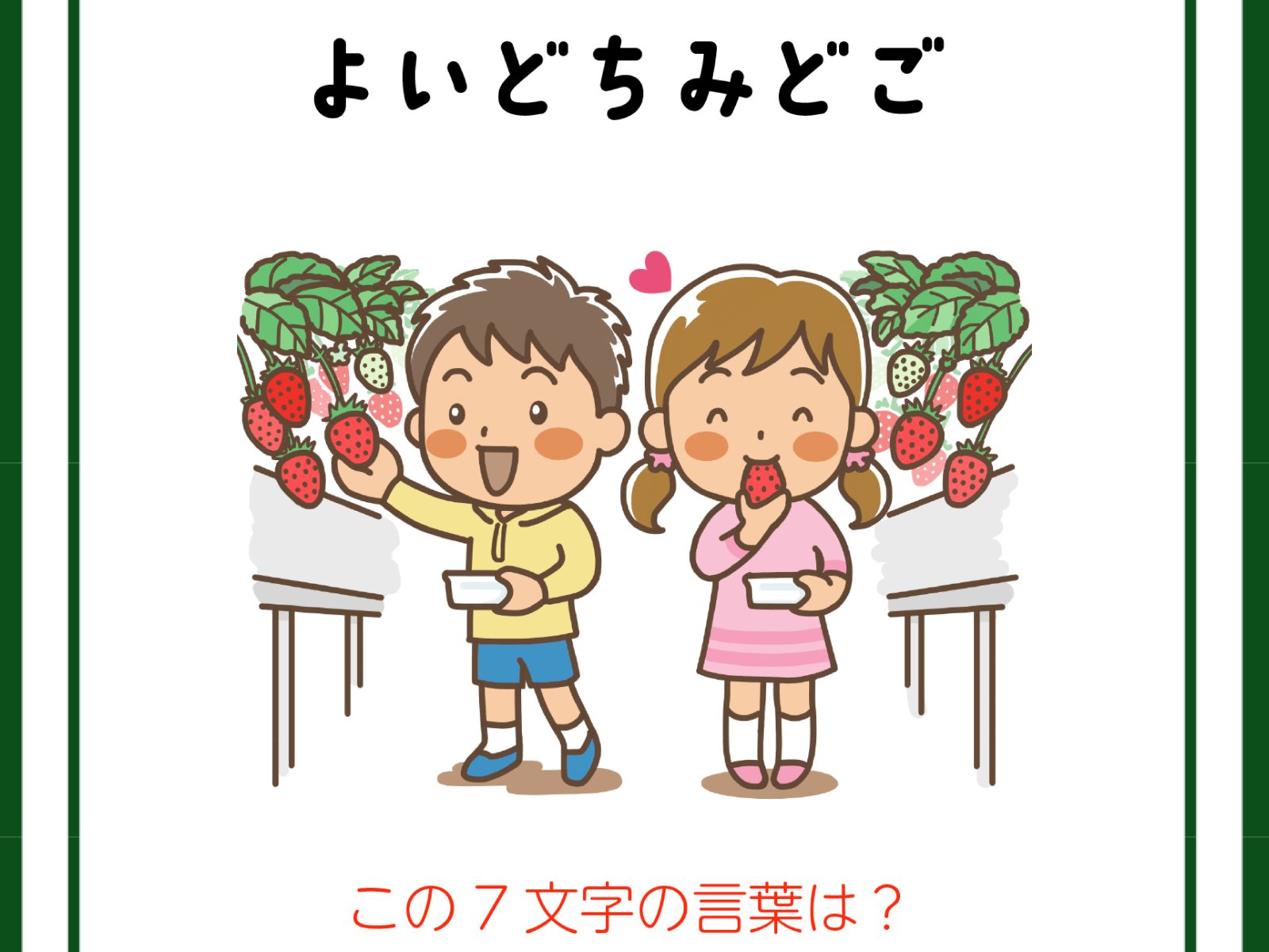 クイズです!「よいどちみどご、とは?」イラストはいちごがりですね【難易度LV3.・中辛】