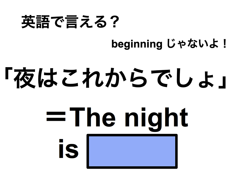 「夜はこれからでしょ」って英語で言えますか?