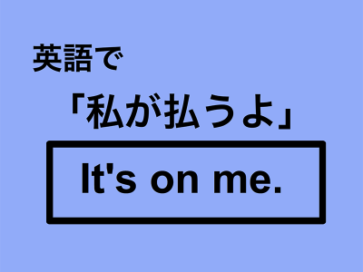 It’s on me. は「支払いは私がするよ」「おごるよ」と言いたいときに使います。