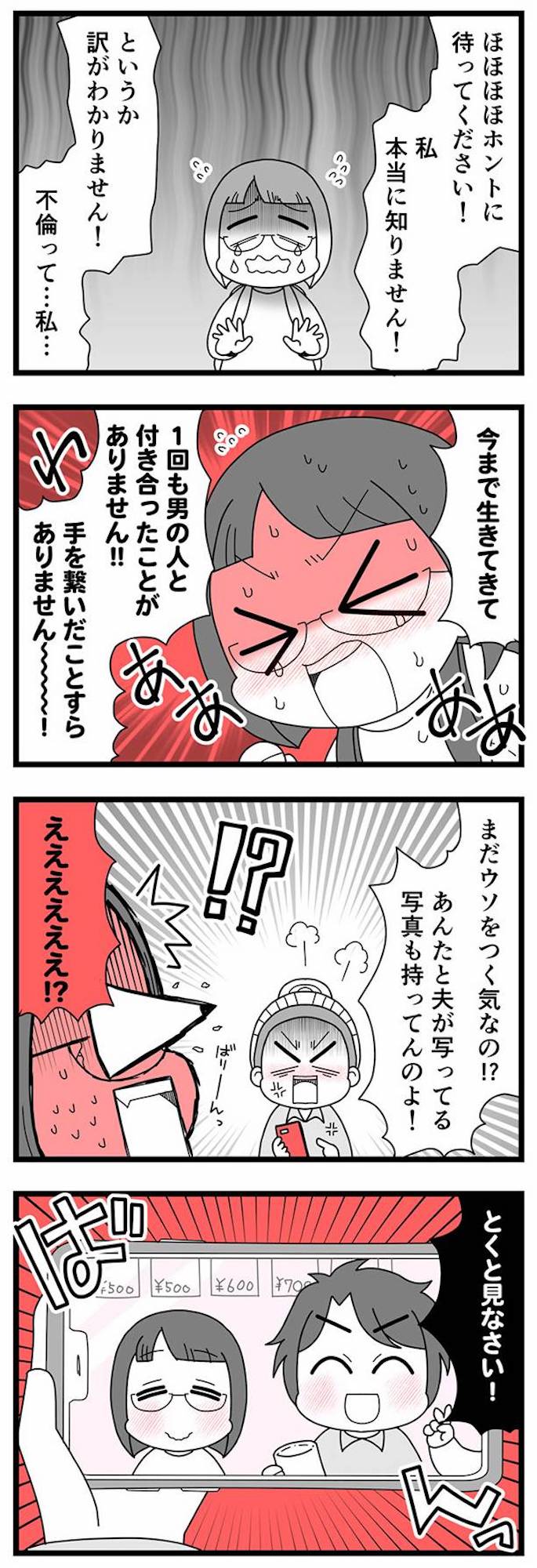突然の罵声に戸惑う正子。不倫なんて身に覚えがない――。