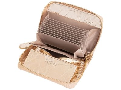 [RafiCaro] ミニ財布 お札が折れない レディース メンズ 二つ折り財布 大容量 じゃばら カードケース ボックス型 小銭入れ YKKファスナー 牛革 小さい コンパクト ゴールド