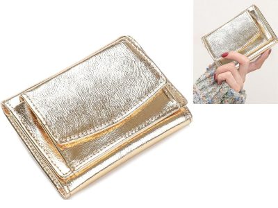 [imeetu] ミニ財布 三つ折り財布 レディース メンズ 本革 小さい財布 スキミング防止 小銭入れ付き みつおり 牛革 軽量 コンパクト RFID (箔レザー ゴールド)