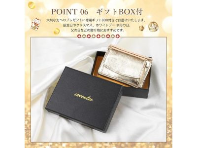 手のひらに収まるミニサイズの「三つ折り」財布。スキミング防止素材を内蔵していて不正スキャンをブロック。ギフトBOXつきなのもうれしい♪